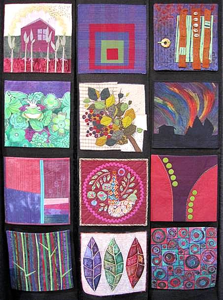The panels of quilts were shown in consecutive order. The two on the right are the last two from the Theme project which is covered in their very successful book. See their website: http://www.twelveby12.org/