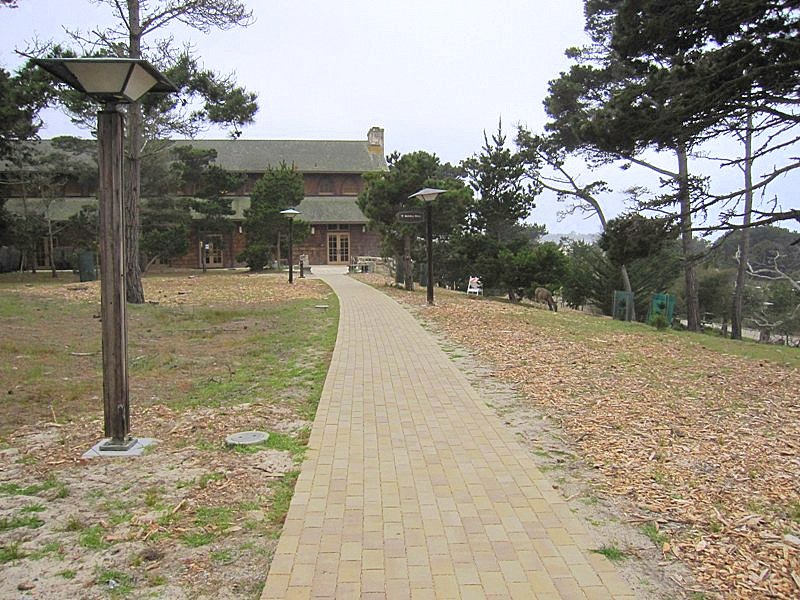 One thing different at Asilomar this year is the construction going on. They are renovating all of the paths and ramps and stairs, so the routes to different places on campus are strange. This stairway goes up the side of the Pirate's Den building (one of the original 1920s sleeping locations) where my room is on the SE corner. The room below me is blocked off and the forms are being set for ? concrete? Several pathways that were always packed dirt have been repaved with beige bricks.