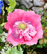 Yvonne Porcella's last exhibit was at Visions Art Museum in San Diego, it was a room full of color and some slightly whacky motifs. I went back to see it several times before deciding that this quilt had to come home with me. There was a row of about seven quilts the same size, all brilliantly colored, but the flowers on this one really speak to me. It is now part of the Thomas Contemporary Quilt Collection - number 314.